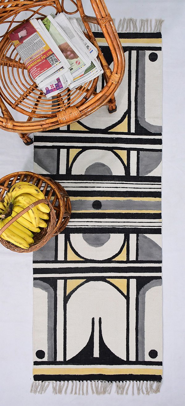Beige Black Rug Cotton Dhurrie Rug Geometric Rug Area Rug Bohemian décor