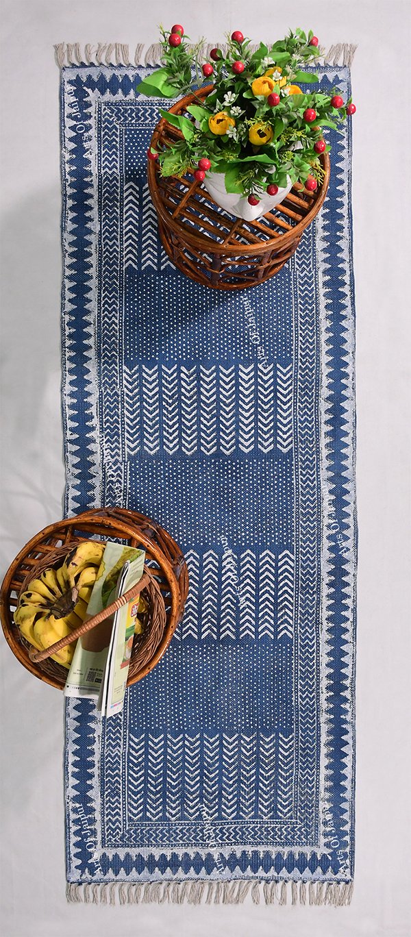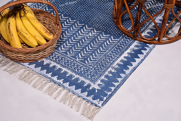 Dinning Area Rug Blue Color Rug Cotton Dhurrie Moroccan Rug Boho Rug