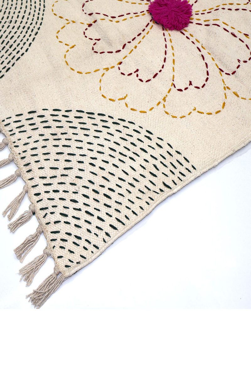Bring warmth and handcrafted beauty to your home with this Cotton Kantha Work Rug. Made from high-quality natural cotton, this rug features traditional hand stitched Kantha embroidery created by skilled artisans.