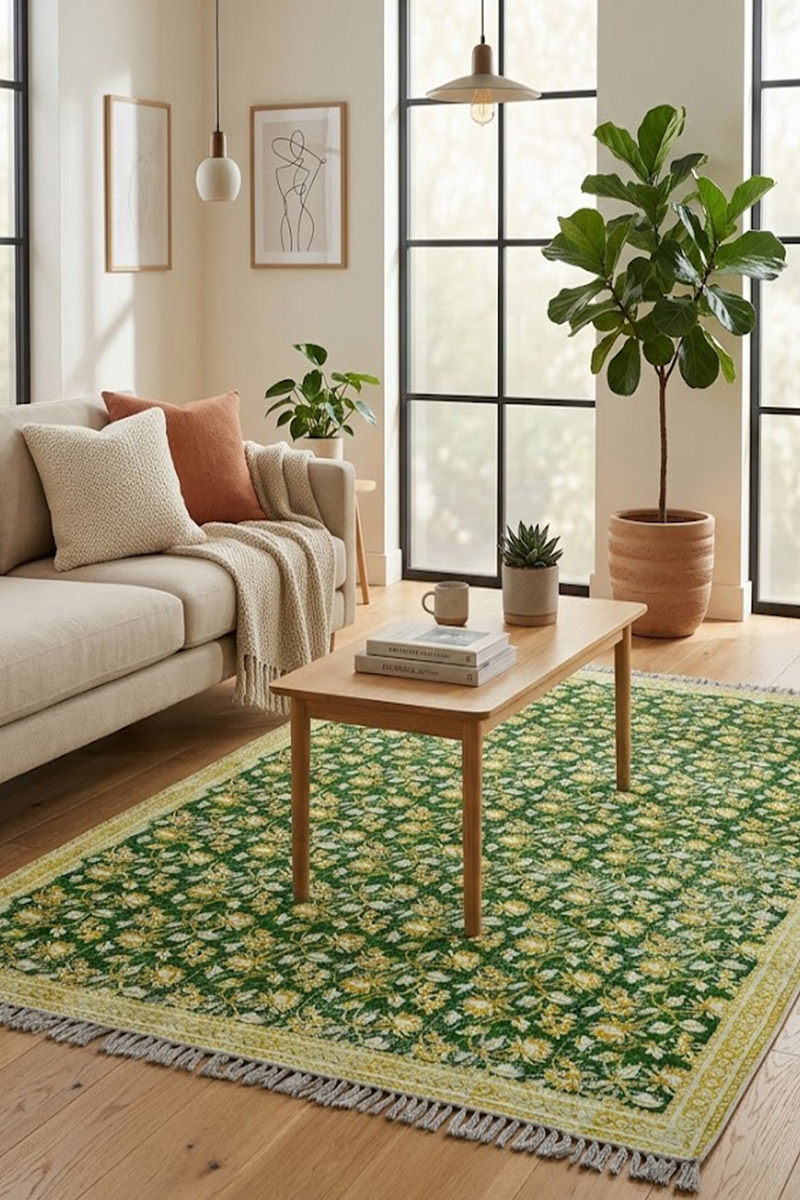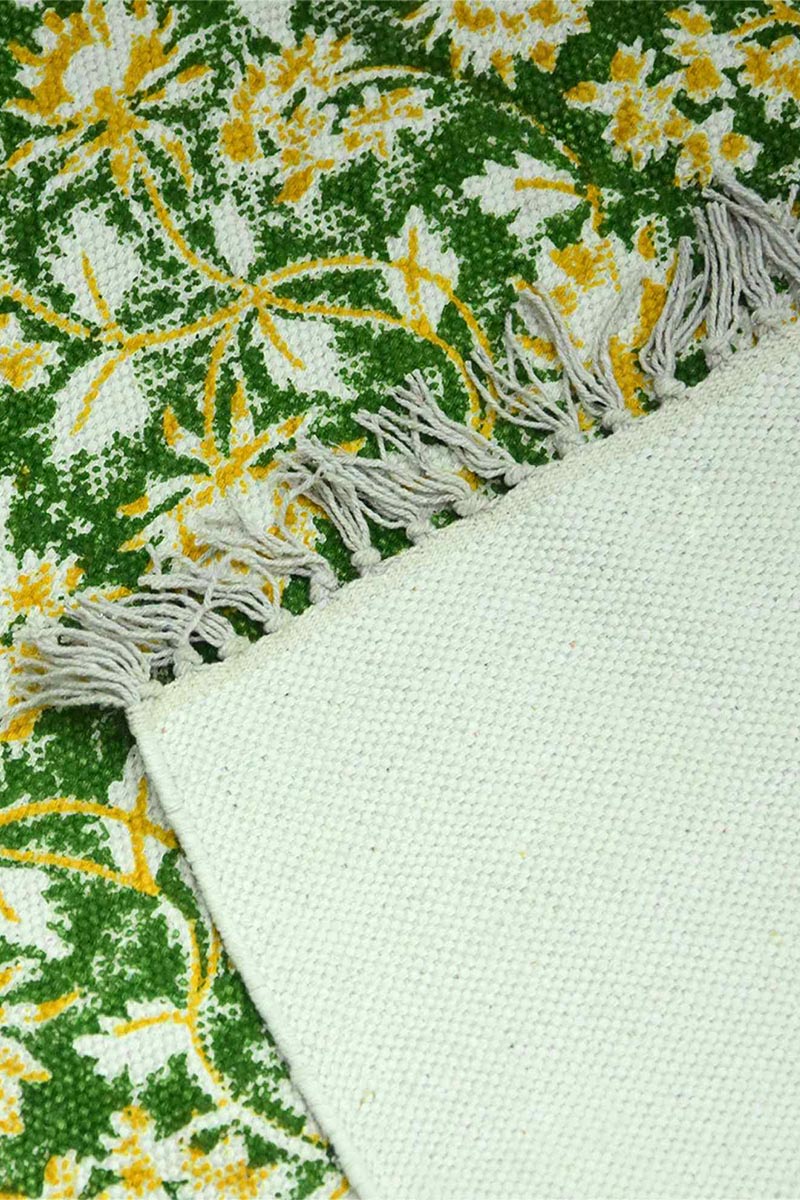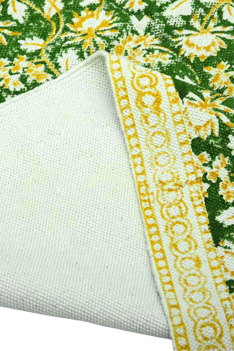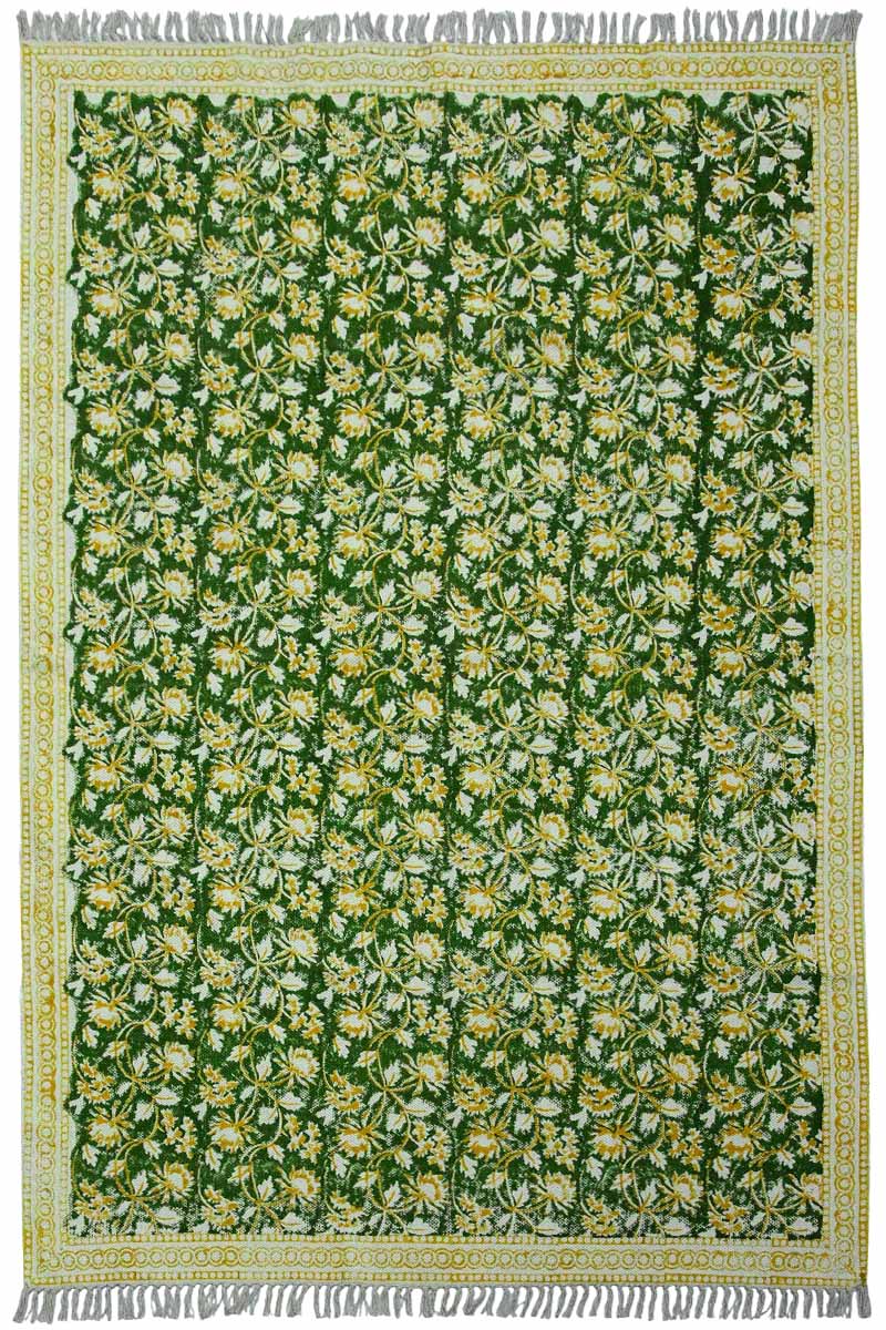 Exquisite Green Floral Rug | Hand Block Printed Rug