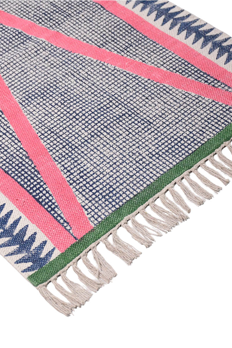 • Flatweave / Hand-Block Printed DesignGeometric Cotton Rug is perfect for making your space look bold and modern with its unique geometric pattern in pink. Its simplicity and symmetry give it a powerful visual appeal, making it suitable for modern and boho decor.