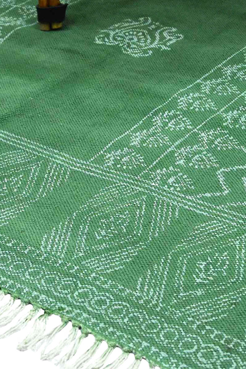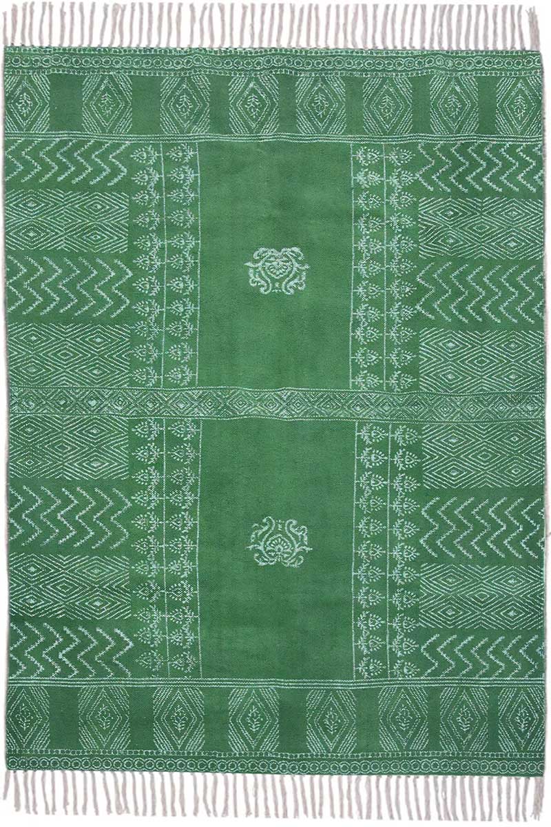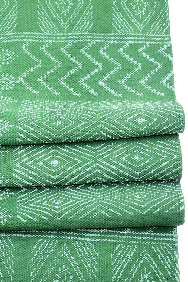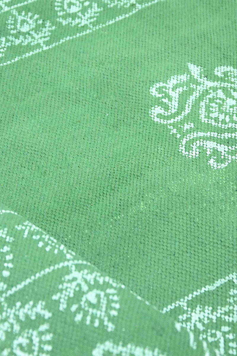 Hand Block Print Green Rug Geometric Bedroom Dhurrie
