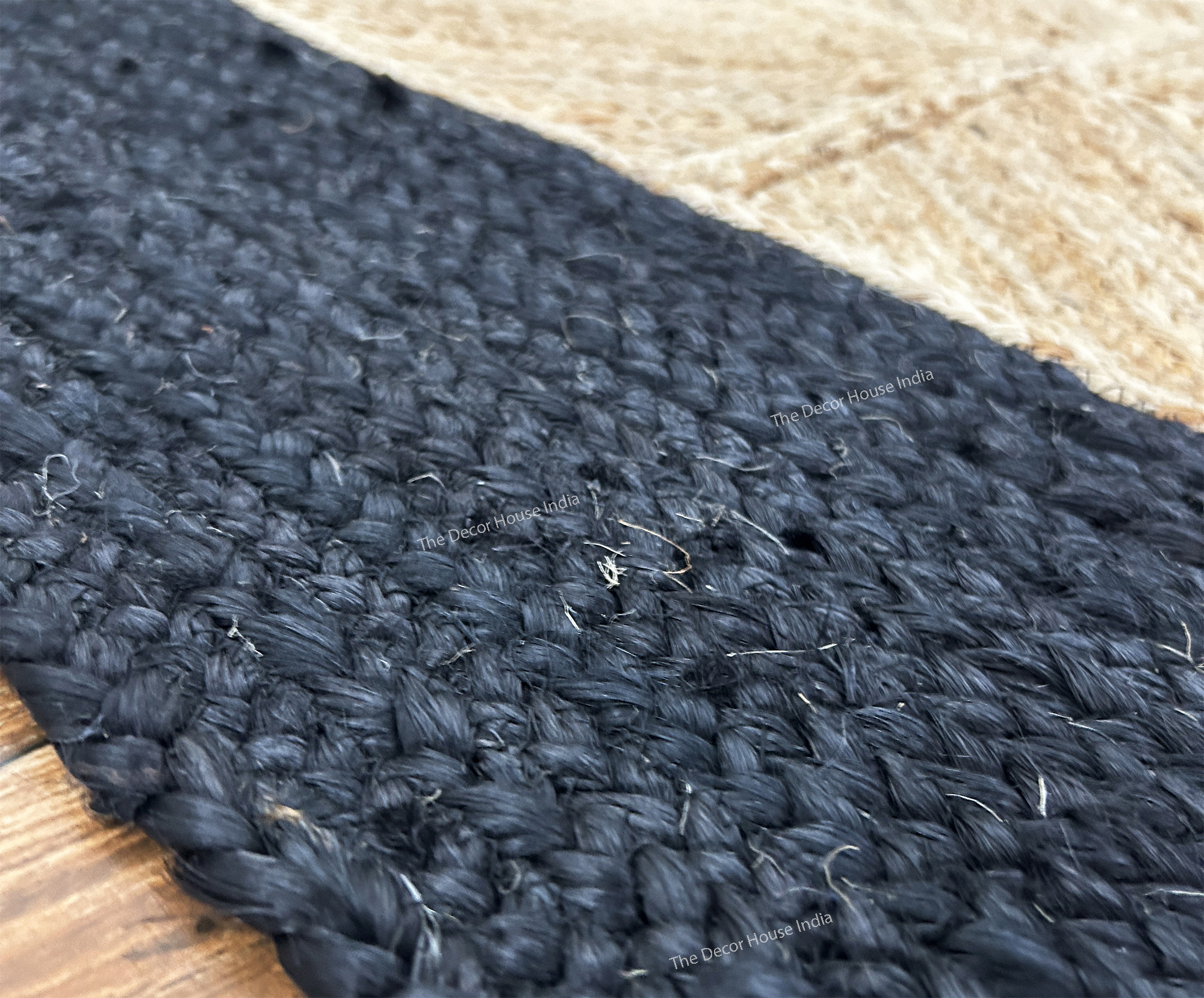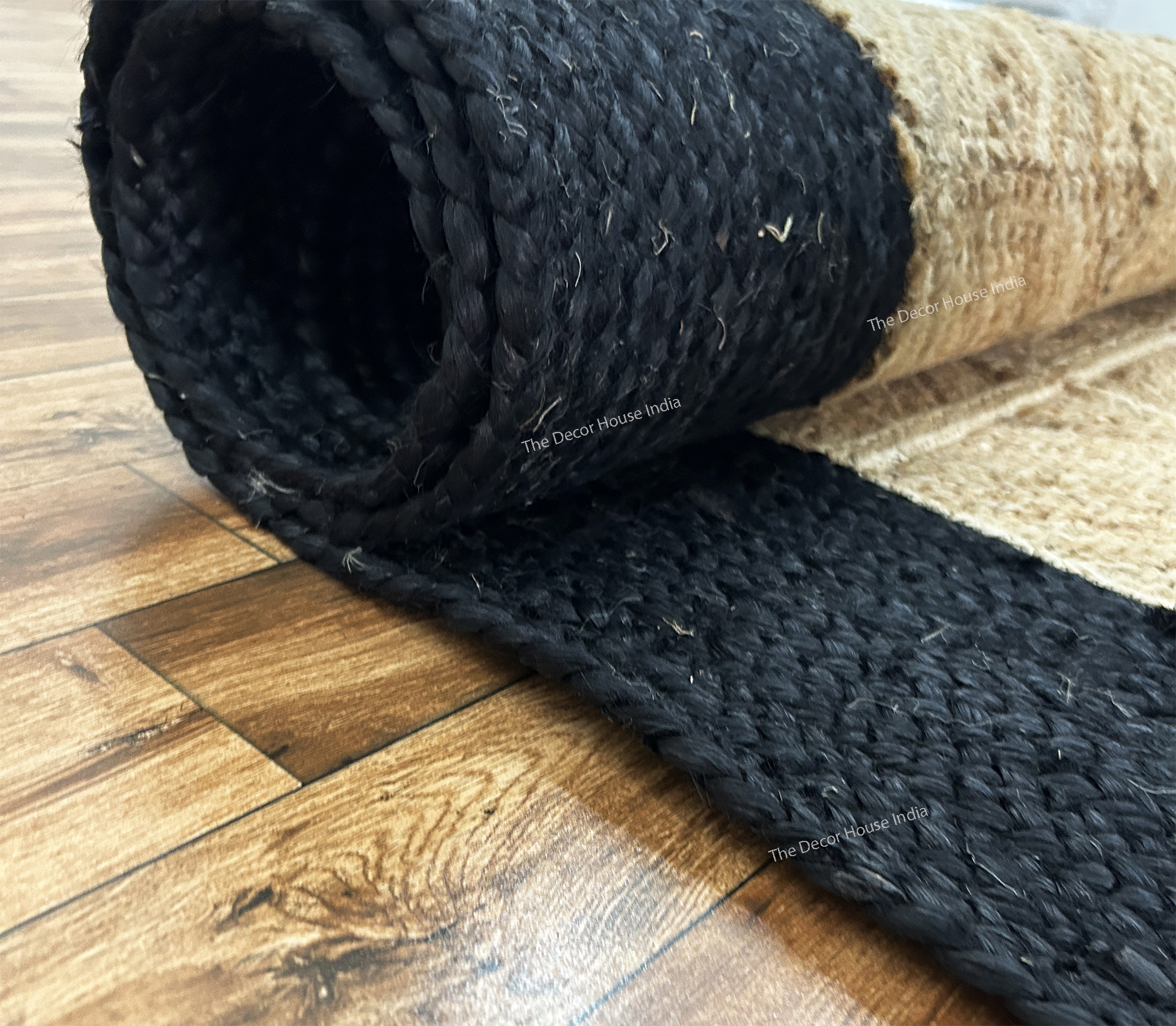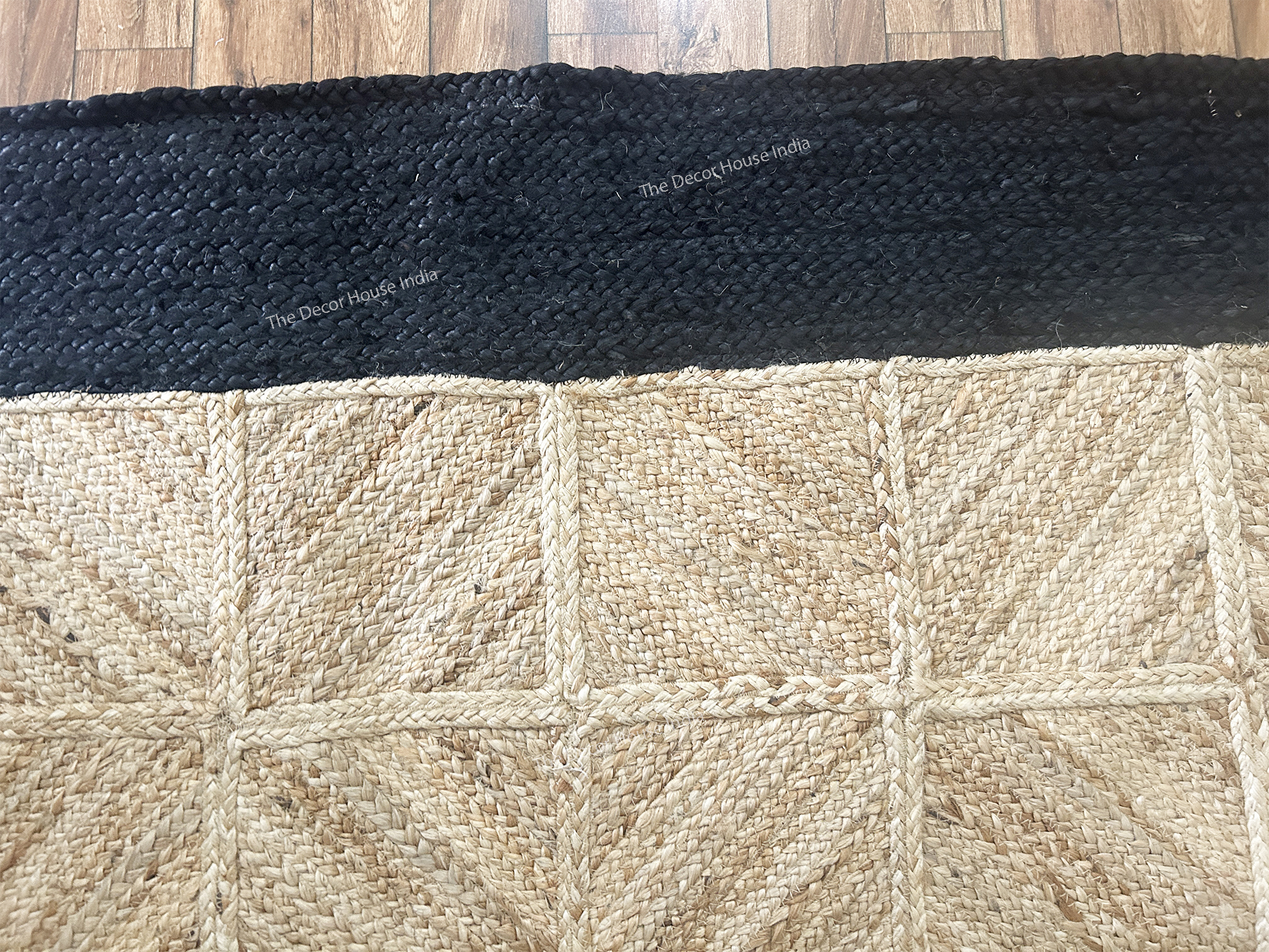 Hand braided Natural JUTE RUG Black Border Rug, size 8×10 Feet