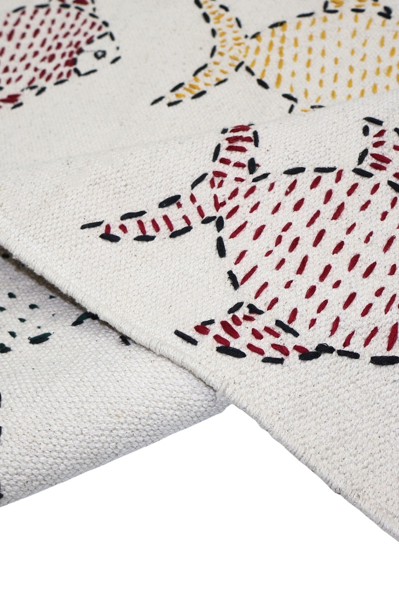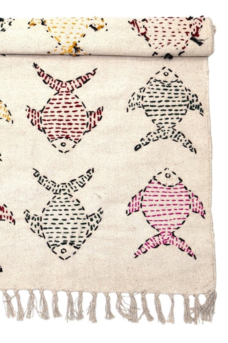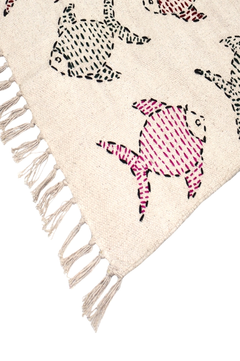 Handmade Kantha Cotton Carpet Animal Embroidered Rug