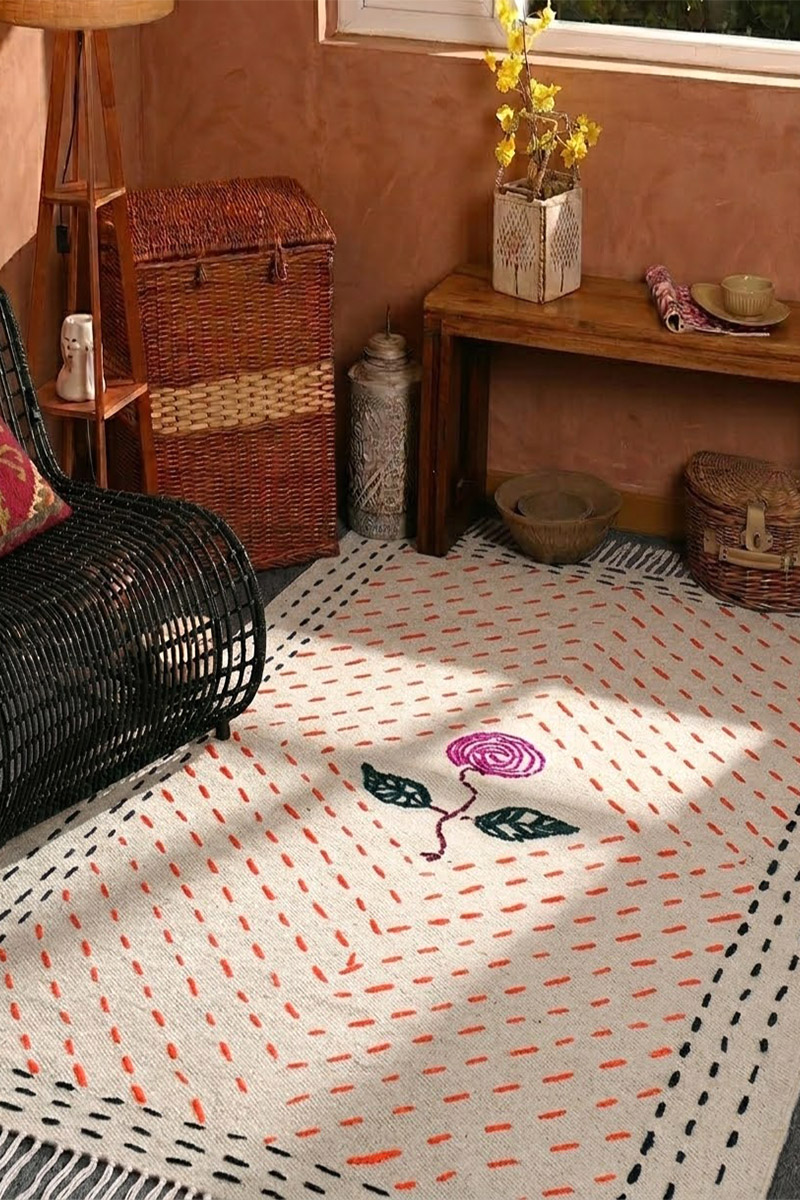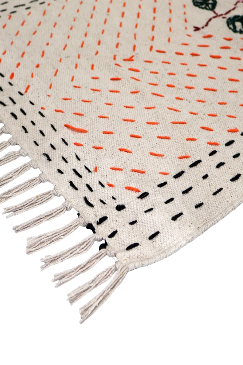 Bring warmth and handcrafted beauty to your home with this Cotton Kantha Work Rug. Made from high-quality natural cotton, this rug features traditional hand stitched Kantha embroidery created by skilled artisans.