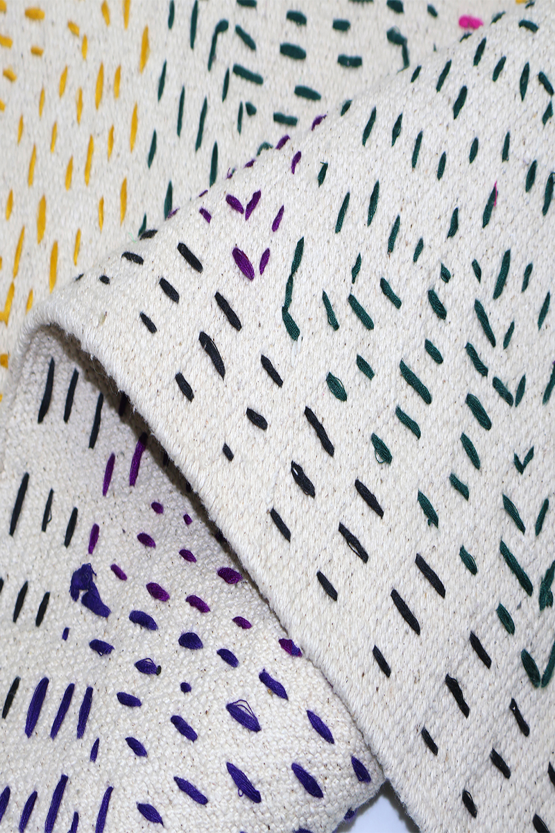 Bring warmth and handcrafted beauty to your home with this Cotton Kantha Work Rug. Made from high-quality natural cotton, this rug features traditional hand stitched Kantha embroidery created by skilled artisans.
