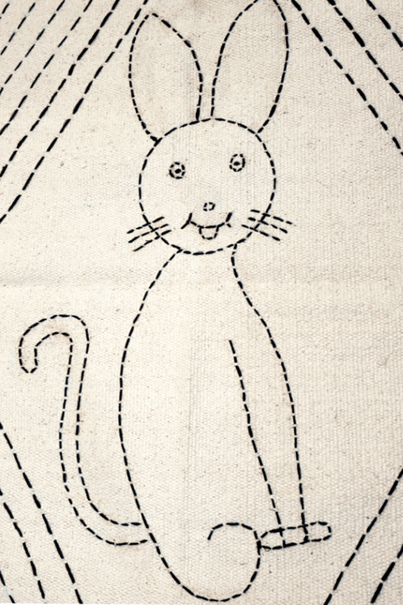 Artisanal Kantha Cotton Rug: Charming Cat Motif