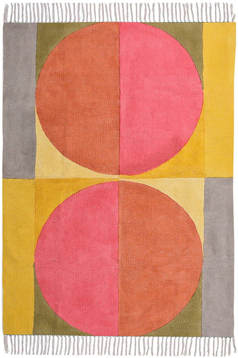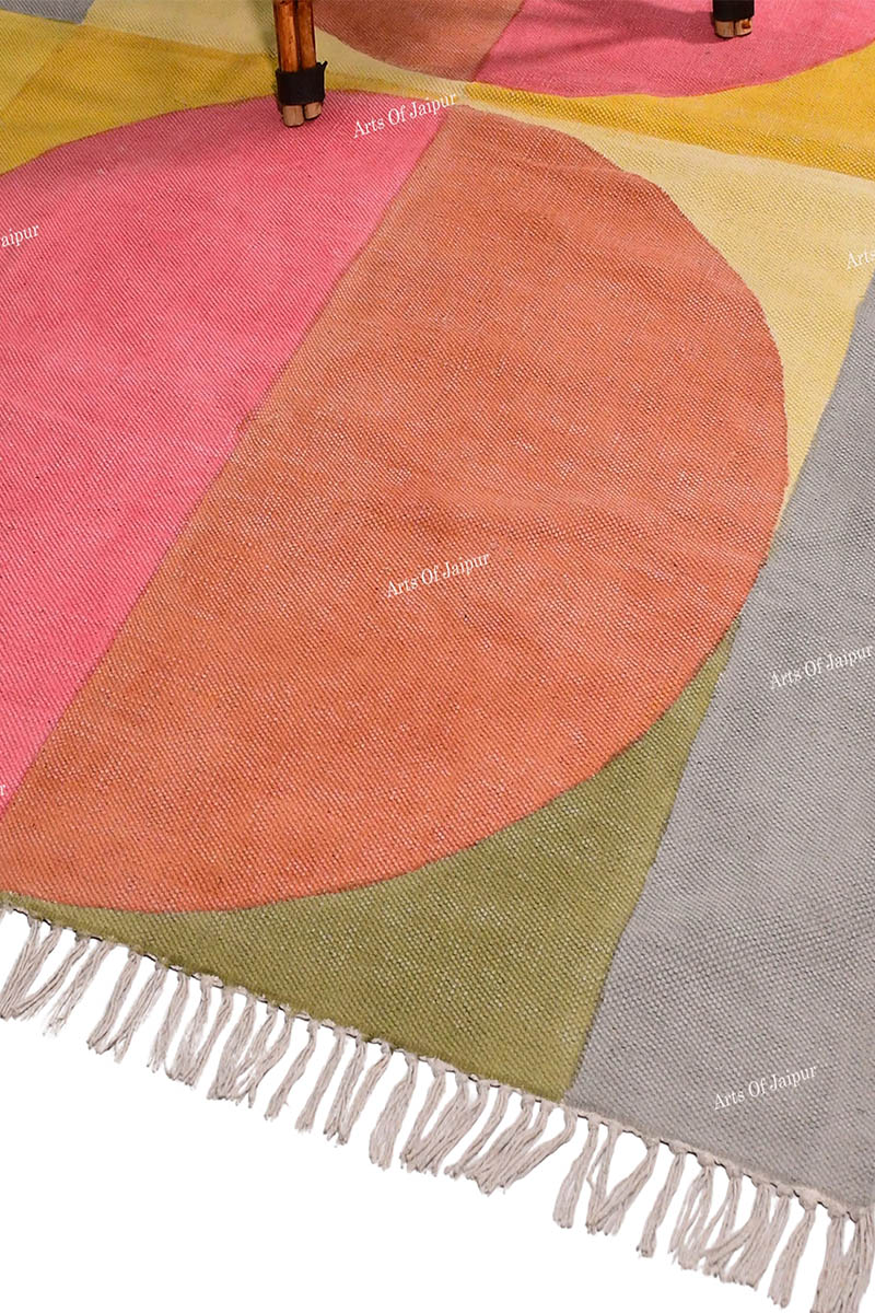 Hand block printed cotton rug is a perfect combination of traditional artistry and contemporary design. The rugs are made of cotton, a breathable fabric, and have intricate designs carefully stamped on them by skilled artisans using wooden blocks. Each rug is unique and will add a touch of warmth and texture to any room with its colorful design.