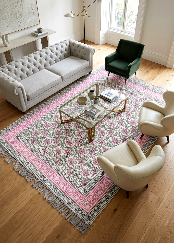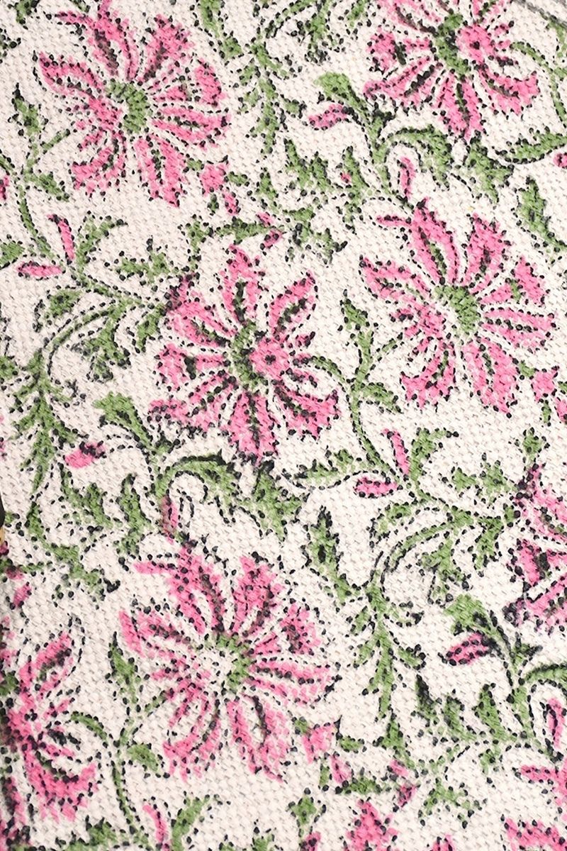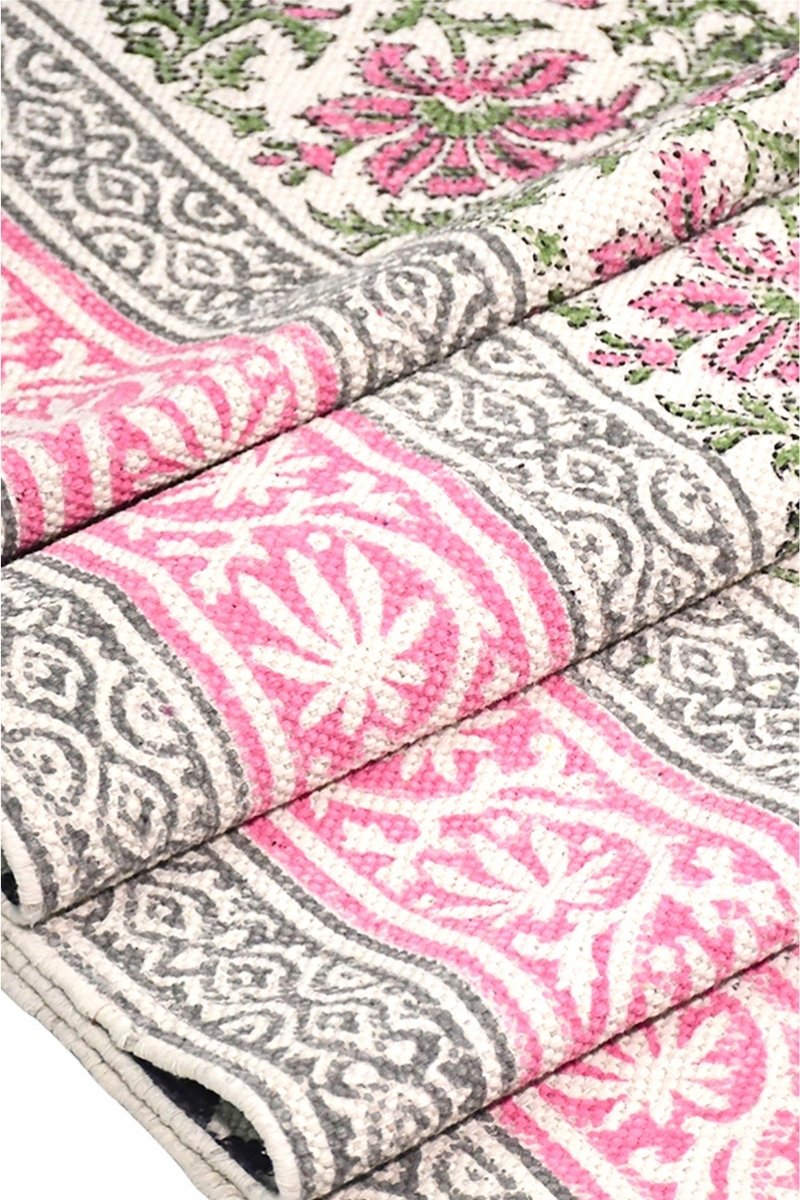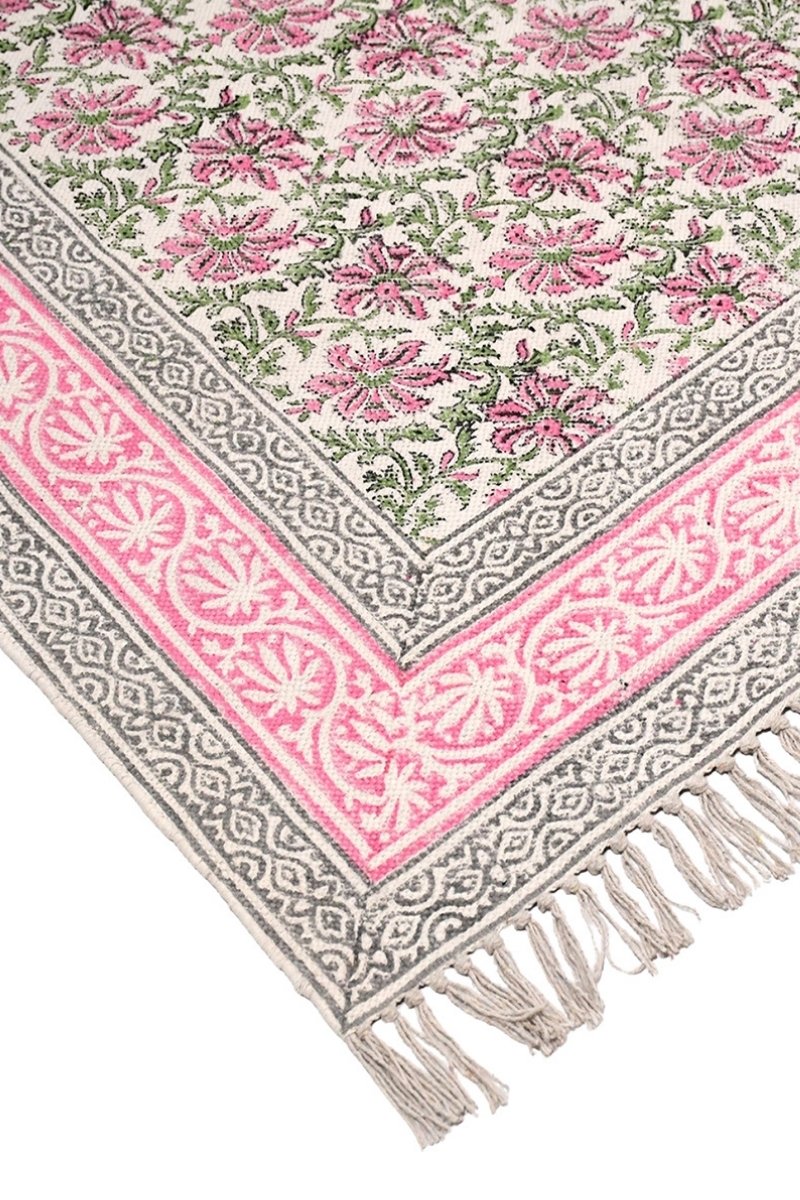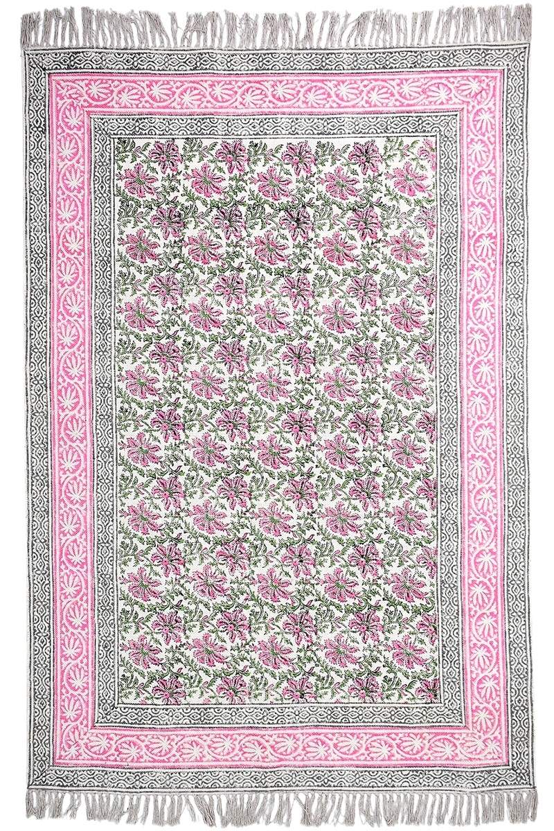 Elegant Pink Floral Hand Block Printed Cotton Rug